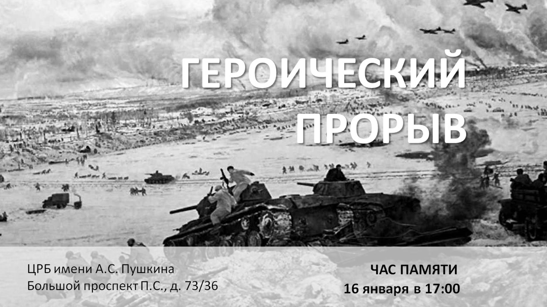 Приглашаем всех читателей на тематический час памяти, посвященный 83-й годовщине героического прорыва блокады Ленинграда. Эта важная дата в нашей истории – напоминание о подвиге защитников города и урок мужества и стойкости.